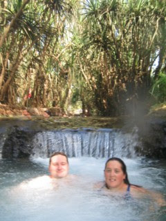 Our (very) rude awakening came at 6 before we heading out towards Katherine Gorge where we spent half a day canoeing up and then back down. About halway up, we spent some time on our very own secluded beach before continuing on. There was a section at the end of the first gorge (there are 9 in total I think) where you could carry your canoe over 3 sets of (not very) rapids before carrying on to (you've guessed it) the second gorge. In the 35 degree heat we decided to watch the others and shout encouragement from the bank, and made it back around 20 minutes early. Laurina, Katherine, and Ben (paddling on his own) didn't get back until nearly an hour late meaning a change of plans - not all bad - we got to go to Katherine Thermal Spa
